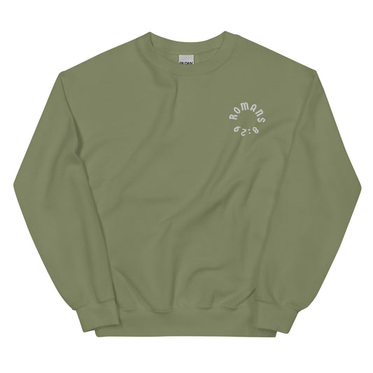 Romans 8:29 White Embroidered Unisex Sweatshirt